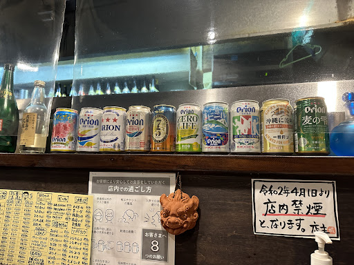 外観は住居系ビル1階!店内はカウンター席にテーブル席、座敷テーブル席とあり!沖縄らしい三線や沖縄民謡がBGMでガンガン流れているのかと思いきや、ゆっくりと時間が過ぎていく静かな雰囲気があり、来店されるお客様は家族連れ、カップル、1人客など様々ですが、各々のサンクチュアリーを形成しているかのような情景は思い白い!まぁこの大手門エリアの住民に支持されている証拠でしょう。