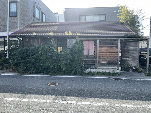 工場・倉庫・事務所が立ち並ぶ地域の中に目立たない感じの木造平屋建ての建物。 その建物右側に駐車場5台があり、そちらに車を停めてお店の前に。