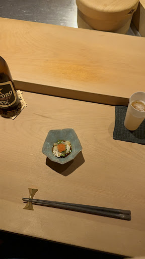 Extremely overpriced for what it is. When booking on their website, there are two menus to choose from for dinner. One is 33,000yen and the other 55,000yen. We opted for he 25,000yen menu since it would be our first visit. When we arrived we noticed the other 3 diners (local Japanese) had a different menu. We took note of what they had (we assumed it was the more expensive menu) vs ours and were so glad we didn’t opt for the more expensive menu. For a sushiya to charge 55,000yen it would have to be a top tier one in a city like Tokyo, but keep in mind we’re in Fukuoka here. The chef did offer a few pieces of fish using aging techniques which was special but for the price we paid we expected a higher quality of skill. What really bewildered us was whether the locals would actually pay such an amount for...