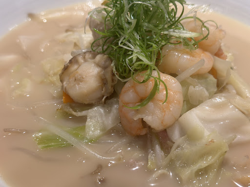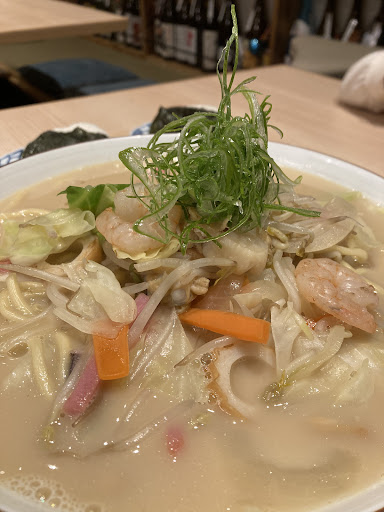 Read moreスープ飲み干す絶品ちゃんぽん! 高宮駅から徒歩2分くらいの場所にあるお店です。夜は鍋のコースをメインとした飲食店のようですが、昼間だけちゃんぽんを提供しています。 土曜日のお昼に子供2人を連れてランチにいきました。 入り口が2つあり、片方はバリアフリーなので、車椅子や、ベビーカー入店もできそうです。 店内はとても綺麗で、カウンター、テーブル、座敷の席があり、アットホームな雰囲気で居心地がいいです。 壁一面に、焼酎がずらっと並べてあり、夜に訪れたくなりますね。 ランチは、ちゃんぽんのみ!あと、おにぎりがあります。 ちゃんぽんは、具沢山で、鶏軟骨の団子、エビ、イカ、ホタテ、ちくわ、かまぼこ、あさり、キャベツ等が入っており、具沢山でボリューム満点です。 スープは、まろやかクリーミーな感じで、子供がよく飲んでました。 おにぎりも塩加減がちょうど良く、美味しかったです...