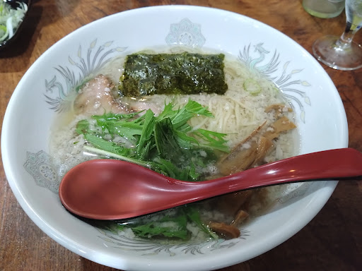 Read more高評価を見て訪れました。 初回はお吸い物系では無い、力強い関東風の中華そば(背脂入り)を頂き今度は別のラーメンも頼んでみようと思いましたが、第七波感染者数増加中に2回目訪問。 今回妻を初めて伴ってランチタイムに入ったのですが、店主さんの知り合いの方と思われる常連さんと、その仲間が宴会中。