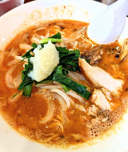 濁ったスープにニラとおろしニンニクがどーんと乗ってます。そこからがスタートです。 スープをすすると想定以上にドロッとしてます。辛さはそれほどでもなく、私にとってはちょうどいい辛さです。びっくりするほど深い味わい。麺は博多ラーメンの極細麺でした。厚みのあるチャーシューがごろっと入ってます。チャーシューの味付けもめちゃくちゃ美味しい。替え玉を注文しようか迷いましたが、今日はやめときました。とんこつラーメンではないですが、麺が極細麺なので替玉しても行けると思います。