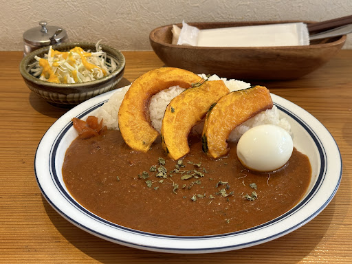Read moreとても気になってたカレー屋さんにようやく行けました。 人が多いイメージだったので、大雨の日に人が少ないかもと思いお電話で確認したところ空席ありとのことで急いで向かいました。近くのコインパーキングが40分100円で駐めれました。 13時30分に到着し、8割ほど埋まっていました。2人掛けのテーブルが3つと4人掛けのテーブル1つ、カウンターに5名座れます。おひとり様はカウンターに案内されるようで、2人掛けのテーブルが空いていてもカウンターが埋まるまではカウンターに案内されます。カウンターの端が空いていたのでそちらに座りました。すでにメニューのスープカリーとスパイシースパイシー、とんかつカレーは売り切れとのこと。ケーキセットにしポークカレーと桃のショートケーキとアイスミルクを注文。店員の女性の方がとても丁寧に対応してくださるので、ひとりでも不安なく過ごせました。 カレーはとても煮込まれてて程よくスパイシーで食べやすく、おいしいです。豚の角煮のような塊がとても柔らかかったです。ケーキもスポンジがしっとりで桃もジューシーで本当においしくて、どちらもペロリと食べてしまいました。 セットで2,000円弱くらいでした。 久々に満足のいくランチができて、本...