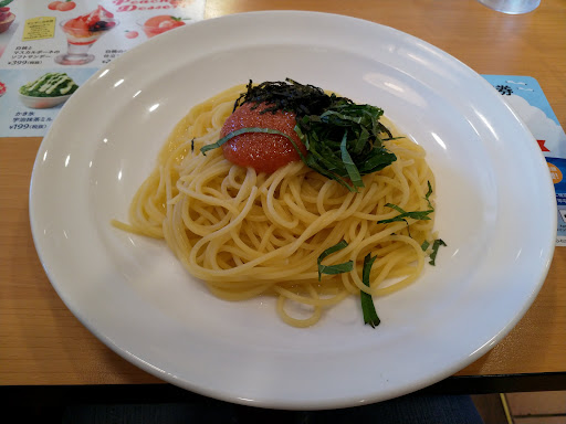 Cheap family restaurant but food are always stable good quality for the price. This shop was a bit small and we had to wait to park when it's busy around lunch time. I had the Japanese cod roe pasta. It felt a little dry but I liked it. You can add soup, Salad, drink bar etc with an additional price. Drink bar has wide variety of drinks which is always good. My child had kids Bolognese spaghetti. It had a good serving and...