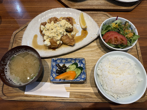 初めて来たので、欲張って(笑) 大人のお子様ランチ的な A定食(唐揚げ、魚フライ、コロッケ)と B定食(チキン南蛮、魚フライ、コロッケ)を注文。