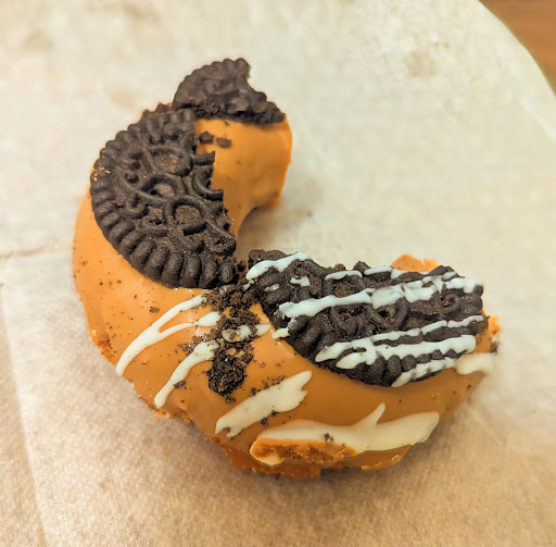 Read more店名にもなっているスタンダードなドーナツや、シュガードーナツはかなり油っこく、甘さも強かったため口に合いませんでした。ザクザク食感のチョコやキャラメル系のドーナツの生地はミスドのオールドファッションの様な生地でこちらはそこまで油っこくなくてよかったのですが、価格は全て300円前後とコスパを考えるとリピートは無さそうです。雨の日に外で並んで買ったので、残念な休...
