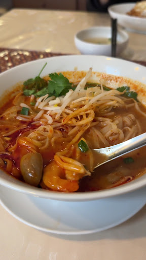 トムヤム麺が米麺チョイスできるの嬉しい!🍜 酸味がたまらん、めっちゃ美味しかった 辛さ調整できるみたいなので次回はもう少し辛くしよ🌶️