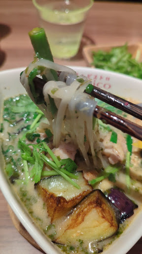 スープは熱々! ひと口スープを啜ります。 ココナッツの風味もありつつかなりスパイシー!パンチのあり独特の癖がない食べやすいグリーンカレー。 具はオーソドックスな鶏肉、タケノコなどが入っています。 鶏肉がかなり大きくて嬉しい! タケノコもシャキシャキと新鮮な感じで日本人好みかも。 パクチーを入れると更にベトナム感が増す! シャキシャキ感とベトナムフォーのツルツルした麺。 そして、スパイシーなパンチのあるスープと絡んで美味しい!