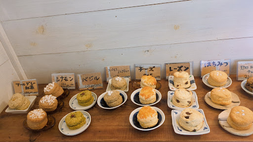 Read more11時半ごろに伺いました。 8種類ほど購入。 その日の夜に生クリームのスコーンをたべました。 温めずにそのまま食べたのですが、ちょうどいい大きさと甘さです。 翌日、抹茶と黒砂糖を温めて食べました。 温めて食べることをお勧めします! 購入した時もお店の方に温めた方がおいしいといわれてましたが、本当にその通り。 朝一番だといろんな味のスコーンが選べます。 お隣のお店...