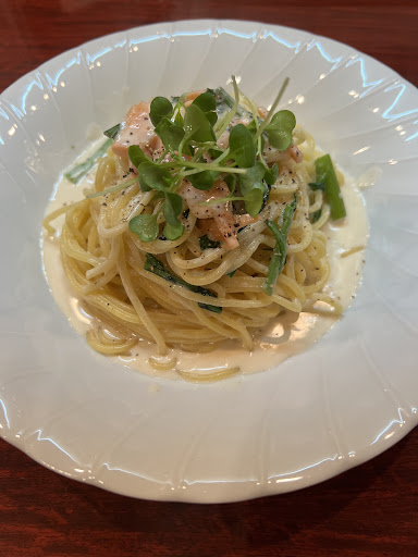 Read more手作り麺のパスタが美味しいイタリアンレストランです。妻と二人で平日にランチに行きました。予約せずに、11:30オープンの10分前に行くと、3組ほど並んでいましたので、最初の案内で入店できました。「お二人様セット」を注文しました。サラダに、ピザ、パスタ、デザートにドリンクまで付いて二人で3100円はコスパ良すぎです。ピザは焼き立てのチーズがたっぷりでおいしかったです。選んだパスタは「鶏肉といろいろ野菜のクリームパスタ」です。プラス150円で大盛にしました。手作り麵なのでもちもちしててボリュームがあります。大盛にしなくても良かったかなというくらいおなかにたまります。この金額でこれだけのセットは安すぎなくらいです。また、何より接客がとても印象が良く、いいお店だなと思いました。帰りに次回100円引きの割引券をもらったのでさらにお得です...
