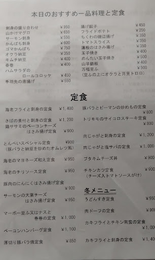 Read more・昭和の定食屋という言葉がピッタリ。ベーコンの焦げ目が強めで、ハンバーグのソースがチョイ辛めだったが個人的には好みで接客も明るくて良い。 ただ、タイミングが悪かったのだろうが、隣の貧乏臭いオバハンがハイボール飲み終わった後タバコを空ぶかししていたのはうっとうしかった。こんなヤツのせいで灰皿がなくなるのは困るが、吸われない方はたまったもんでない。また、貧乏臭くて知ったかぶりのオッサンも延々大将と話をしてうるさかった。どうも知り合いのようだが、付き合いで仕方がないにしても他の人には関係ないので▲1。さらにカウンターのテーブルにコートを置いて定食を食べる非常識なサラリーマンあり。コイツは店の女の子と朝見たよ…何時何分の電車…などと話していた。普通ならこんな会話は気にならないがそんなこと話す前にコートのことぐらい言えよという感じ。 単身赴任者の強い味方であることは間違いなく今後も使わせてもらうつもりだが、このような客層なのだろうか?ヤツらが足を引っ張らないか心配。 ・久しぶりに訪問。エビフライミックス定食エビフライ・チーズハンバーグを頼んだ。安定のコゲ方が良い感じ...