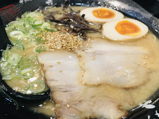 Ramen variations made from rich pork-bone broth, served in a tiny, no-frills noodle bar.