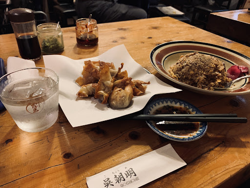 Read more呉朝明(ごちょうめ)は、福岡市中央区舞鶴にあるラーメン居酒屋です。昭和30年創業の老舗で、地域に根ざした中華料理店として親しまれているようです。特に人気なのは、1日限定40杯の豚骨ラーメンで、しっかりとしたコクのあるスープが中細麺に絡み、絶妙な味わいを楽しめます。大きなチャーシューが2枚も乗っており、ボリューム満点です。また、焼きワンタンやゆでワンタンもおすすめで、特製のラー油や柚子胡椒が味を引き立てます。お酒の種類も豊富で、50種類以上のドリンクメニューが揃っています。店内はカウンター席やテーブル席があり、最大32名まで収容可能のようです。天神駅から徒歩10分とアクセスも良好で、深夜まで営業しているため、仕事帰りや飲み会の締めにも最適だと思います。 福岡出張の夜、仕事終わりに訪問。昼間のうちに食べログで調べておいたのですが、仕事が終わってお店に着いたのは23時半過ぎ。24時半で閉店とのことでしたが、サクッと夕食を食べられれば良いのでさっさと頼んでさっさと食べました。 「ゆでワンタン」、「焼ワンタン」は、人気メニューだそうです。「コリコリ塩ホルモン」、「和牛ホルモン」は、それぞれにホルモンの食べ方が違っていて、美味しかったです。〆は、「黒豚トンコツラーメン」。普通の博多とんこつとは違いましたが、これはこれでとっても美味しかったです。総勢5名で30分弱であっという間の夕食でした。今度は、...