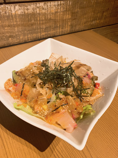 ☑︎海鮮ちらしサラダ(979円) お刺身がたっぷり入った豪華なサラダ✨ お刺身が宝石のように輝いていました💎