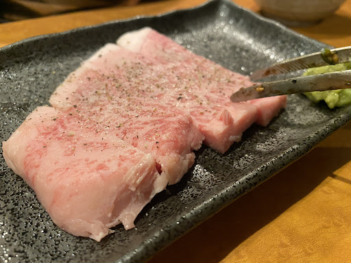 いま博多で注目を集めている焼肉屋の「結」さん。Googleクチコミでも高評価。 ・ 駅から徒歩3分と便利な場所にありカウンター席があるので1人焼肉、デートや大人数でも楽しめるお店。 ・ 平日の17時に予約しましたが帰る頃にはほぼ満席状態の人気店でした。 ・ 名物の大トロタンや肉寿司など上質なお肉が堪能できいろんな部位、いろんな楽しみ方が出来ました。 ・ 肉寿司は口に入れた瞬間、お肉が溶けるんじゃないかと思うぐらいの上質なお肉のお寿司。 ・ コース料理は充実していて4000円~、卓上レモンサワーは60分飲み放題で550円、卓上ハイボール60分飲み放題は600円と破格。 (卓上サーバーは2階のみ設置) ・ お肉が上質なのでどの料理も美味しく特に驚いたのが「飲めるロース」。〆飯として頂きましたがお肉の柔らかさと美味しさに感動です。 ・ コース料理だけではなく単品料理もあるので1人でじっくりお肉を堪能したい時にもオススメ。ただ人気店なので行かれる際には事前予約を。 ・ ・ 今回注文したのは ⋆┈┈┈┈┈┈┈┈┈┈┈┈┈┈┈⋆ ︎︎︎︎︎︎︎︎︎︎☑︎ 単品注文にしました 厚切り大トロタン950円 雲丹のせ炙り肉寿司530円 いくらのせ炙り肉寿司530円 飲めるロース卵付き1380円 柔らかハラミ1560円 サガリ〜わさび醤油〜1180円 桜ユッケ1500円 チョレギサラダ620円 白菜キムチ530円 もやしナムル390円 ︎︎︎︎︎︎☑︎卓上レモンサワー飲み放題 550円 ※ レモンサワーがそのまま卓上サーバーから出てきます) ※...