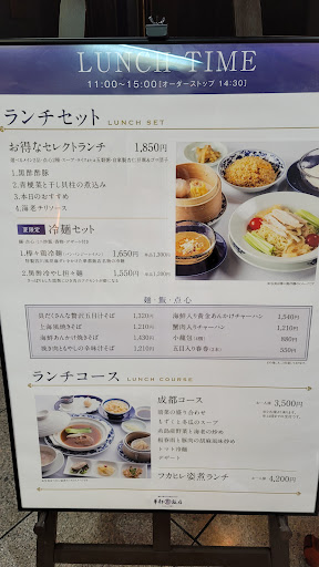 ランチで利用しました。 おかずを2点選べるランチセットで1850円。 おかず2品、点心2点(エビ蒸し餃子とエビ焼売だったかな…?)、スープ、デザートもついていました。 家族は五目汁そばに小さい炒飯(250円だっかな)を追加。