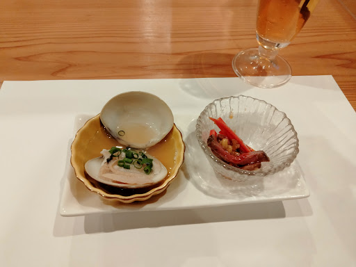 日本酒も振り幅広く、吟醸酒の飲み比べを試させて貰ったあとは沖縄の蔵が醸す本醸造や不老泉といった通好みなものが出てきます。 お店のオリジナルである高取の醸しはお店の方が基峰鶴で酒造りを手伝いながら作られたものだそうで、その中取りは大吟クラスの生酒を二年貯蔵して出荷されたもので純米大吟醸生らしい味わいにきれいに熟成がかかっており、純大生の氷温貯蔵酒だけが表せる素晴らしい味わいが楽しめます。等外米で醸してこれだけきれいに生熟成できるというのも学びになりました。