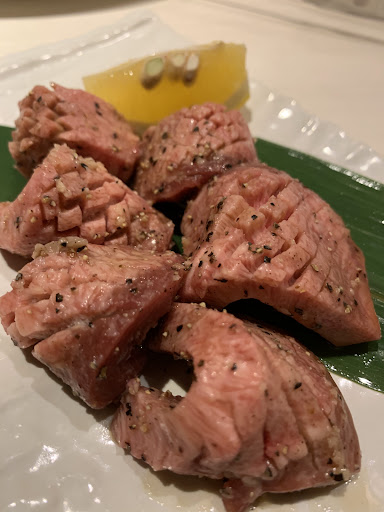 少し厚切りにしたタン3枚を半分にして6枚に見せ、ゴマ油と塩胡椒したやつで1500円以上。