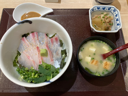 Read moreVery delicious. Fresh fish. Decent amount of fish. I ordered Madai Goma Don Set (sea bream and sesame sauce on rice). 1680¥ includes the rice topped with fish, miso soup, and a selectable side dish (I chose pork and radish. The other choices are grilled egg, steamed egg, kinako pudding, and salad). There are chilli powder and Sancho (Japanese pepper) powder, and sesame soy sauce on the table. Sancho is so good. I love it. It gives the right kick to the food. I put it on my side dish and...