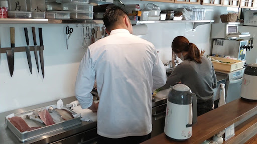以前に住吉神社のひょうたん池近くで営業されていた、「熊泰精肉堂」さんと同一店舗です。初めて訪れた時は一瞬、ん?って感じで戸惑いました。 引き戸を開けると、カウンター席があり、右手側に「熊泰精肉堂」さん、左手のカウンター奥側に「海鮮」を提供をするキッチンがありました。 席はカウンターのみの8席です、平日火曜日の開店直後に訪れると、この日の一番乗りでした、早速口コミで評価の高い「海鮮丼」を速攻で注文すると、すぐに二人組の客が入店し、私が食べ終わる少し前に三人組が入店、私が支払いをしているタイミングで、お一人様が来店していたので、正午過ぎには満席&空席待ちの行列は間違いないと思いました。 海鮮丼は女性のスタッフ(奥様?)がネタを説明してくださいました。 この日のネタは ・サバ・ヒラマサ・ブリ・タチウオ・フグ そして志賀島の和布入り味噌汁と漬物とご飯と小皿が一つ、味噌汁はお替り出来ますとのことでした。 刺身醬油の用意もありましたが、特製ゴマダレにワサビを溶かしても掛けても美味しいですよとのことで、早速試してみることにしました。結果として刺身醬油だと醬油辛くなってしまいがちですが、ゴマダレわさびは肉厚で新鮮な魚との相性も抜群です! 好みの問題ですが、私は魚はもう少し小さく切り分けてもらった方が食べやすいと思いました。 2023/02/14...
