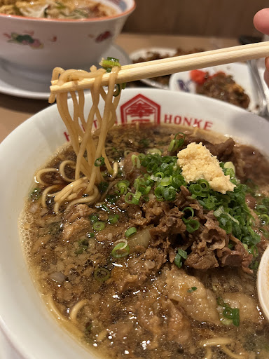 そしてラーメンが到着! 肉がいっぱい乗っていてみるからに美味しそう!! それではいただきます! まずはスープを!! おおー、醤油のうまそうな香りと口の中に広がるこのうまさ! 締めにも最高なこのスープ最高です!! そして麺! 麺はぱつっとした感じ。 この麺は完全に好みです! 美味しい!!醤油ベースのスープとも相性抜群‼︎ 肉もうまい!! これはさすがの味ですね〜 上に乗っている生姜をスープに溶くとこれまた美味!! 味わいはかなり変わりますが、スッキリ感が追加されて最高の味変です!! いやーこれは素晴らしいです!! あっという間に完食でした!