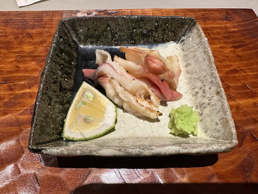 A small restaurant serving a combination of high-end yakitori and Kappou dishes. The food is truly delicious and unique, portion is rather big (many items in the Omakase course) and the vibe is nice too. The utensils are also selected with heart. Quite obviously the chef has a strong passion to cook and he also made efforts to let us know the name of the ingredients in English. If I have to make one little suggestion of improvement, I would say the restaurant can pay more attention to the notes customers put down in the reservation. In my case, I specified one type of food that I am allergic to and it turned out such was neglected. Overall it was an amazing...