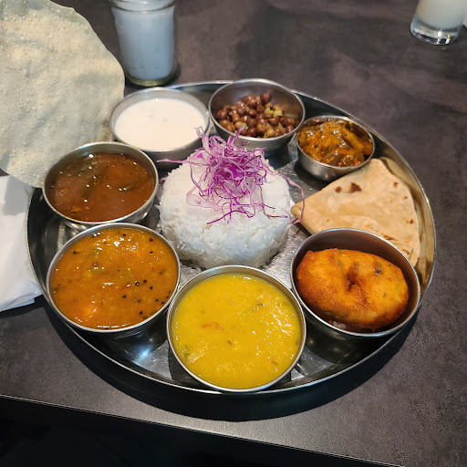 Offering both South Indian cuisine and the generic Indian cuisine most of us know and love. Although if you are coming here I would definitely recommend the dosa set, as it's not something you can find everywhere, and it's delicious. It's also 100% vegan. Offering very meaty to fully vegan dishes they're accommodating to every crowd (aside from those who like bland food I guess). Definitely...