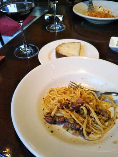 Contemporary Italian osteria with a covered terrace serving typical dishes like pasta.