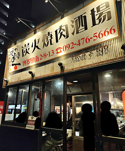 First time here. We didnโt make a reservation. The staff help us out to find a table. There was around 20+ bar seat in the inside area. We were seated in the outside area. At first, we feel a little bit strange to seat on outdoor. However, it was a great & unexpected experience to eat outdoor with a charcoal fire grill wagyu beef with your family. The wagyu beef was great and delicious. The beef is marinated in different styles for different portions. The side dishes was delicious too. It is a great place to enjoy a charcoal grilled beef in Fukuoka. We will definitely come back in future trip. By the way, there is a little kidโs park behind the street, my kids...