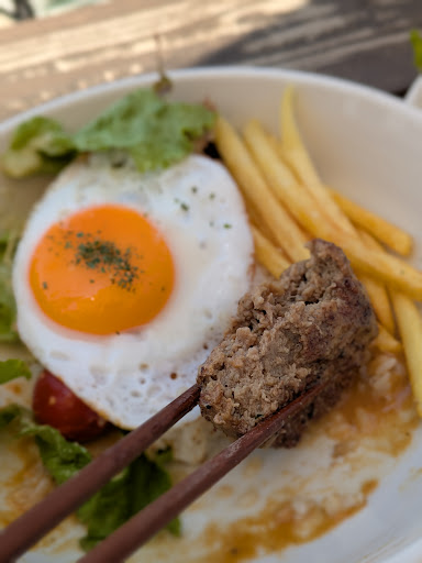 The photos speak for themselves! View was impeccable, service was friendly and nice, and might I say, the locomoco hamburg patty 🥩 was the best I've ever tasted in my life, no exaggeration. The patty was coated with a housemade sauce that was rich in umami, and the patty was seared to perfection — it maintained its slight crispiness despite the sauce, and the interior of the patty was soft and juicy. Best eaten hot, the pairing with the sunny side up and rice really is the perfect lunch you can have, while enjoying the beach view at 20°C spring temperatures. Imagine yourself in a scene from Hometown Chachacha, with soft jazz playing in the background. Truly an experience.