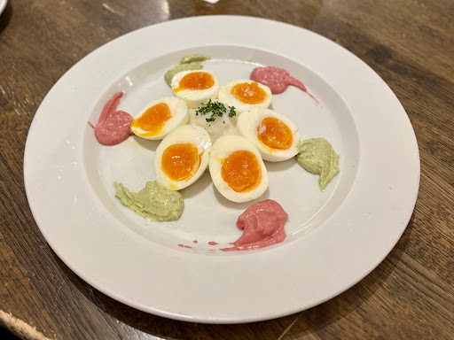 Read more18:00に予約し、17:58に来店「少々お待ちください」と言われ外で待機していると店員さんは無言で看板をOPENに裏返しそそくさと店内へ…うん、私たちが失礼だったんだと言い聞かせ入店。 その後もクールな対応。お水も海外のお店と同様に有料。もちろんそれは問題ありませんが、これ以降はあくまで私の感想です。 お食事はお店の雰囲気もお料理と同じく大切にしたいので私には合わないのかなと思ってしまいました。 しかし、お料理はどれもピントが合って、後味もくどくなく、量は2人1品で丁度良く美味しかったです。苦手なパクチーがワカモレに恐らく少量入っていましたが初めて食べることが出来ました。個人的にはパテとフォアグラがより美味しかったです。 ガブ飲みワインはハウスワインかつ普通のグラスなので…せっかく美味しいお料理なのですから、本日のグラスワインの方がよりお食事と共に楽しめるかと存じます。 そしてデザートも出来合いのものでなく、生クリームを一からハンドで泡立てる姿には感銘を受けました。 少し厳しく評価しましたが、カジュアルにフレンチ、メキシカンも楽しめるお店で美味しゅうござい...