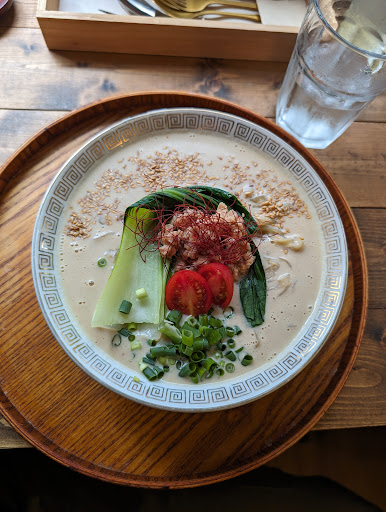 If your in fukuoka go here ASAP, if your vegan or non vegan it doesn't matter the food is amazing, I hardly ever write reviews but this deserves one. The staff were awesome, the girl serving was lovely and spoke perfect English (to a native speaking level, probably better than me and im from england ๐, this of course is an added bonus if you speak english but not japanese). The food, well what can I say. I had hakata ramen no garlic, strawberry smoothie & lemon cake with vegan cream. All were incredible, the lemon cake omg ๐ฒ, it came out warm and was to die for seriously. The smoothie is the best I have had in years and years, these have to be ordered if you go. First time trying hakata style ramen and I have to say I'm a fan and the broth was perfect. The place took us a couple of minutes to find but don't be disheartened you will find it, I have tried adding a video to the review to make sure you find it you it won't let me, you need to go through the bicycle parking and up the stairs on the left to the blue door, they put out a white road cone with the restaurant name on it outside. We waited about 25mins outside as the place was full, (only has 8 seats), it's in an apartment block and is a converted apartment. Go here you will not be disappointed, it will give you an experience if on holiday or if you live in japan make it...