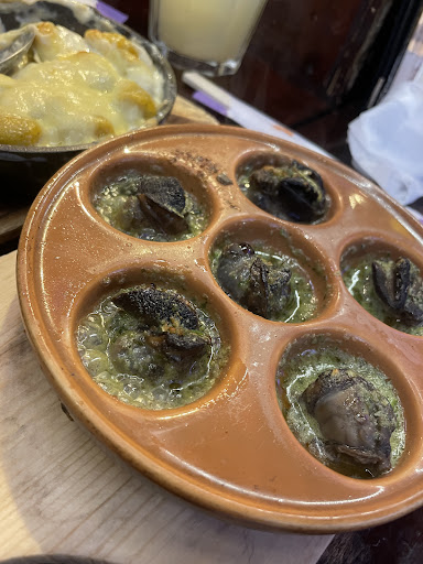 Finally after the wait, we were seated and our order came in promptly. Nama biru, mussels in white wine and garlic sauce, home made sausage, shrimp and mushroom in garlic sauce, and escargot. My goodness, the food was incredible! The common denominator I found, was the garlic butter and it made every dish it involved, amazing! Honestly I could’ve ordered four orders of each dish and I would’ve been happy with my dinner. We loved all the dishes, but what set this place apart was the personalities behind the counter. Remy himself is a sitcom in real life and the other partners he had accompanying him were just as wholesome and friendly. However long the wait is,...