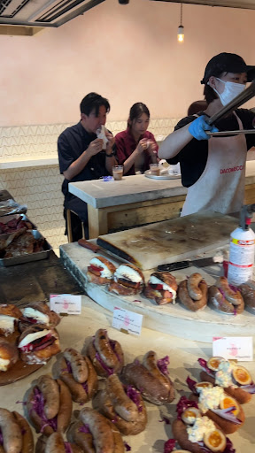 * Dacomecca Dog ダコメッカドッグ🌟 I couldn’t resist the urge of getting their signature hotdog as they grilled the sausages over charcoal fire in front of you. It was a pleasure to watch them preparing and refilling the bread. The constant crowd proved that all the bakes are freshly made.