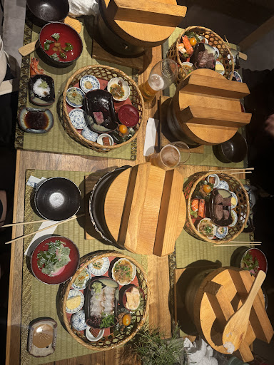 Read more17시 전에 예약 없이 들어갔고 사람한명도 없었고 굳이 가운데 쇼파 쪽 안내해줬다가 가게 사장 같은 사람 아는 지인 앉힐라고 구석탱이로 옮기라 한 것 , 메뉴판을 다른 테이블과 다르게 한정적이게 보여준 것 , 우리가 아는 지인들 보다 훨씬 먼저 들어갔고 훨씬 먼저 메뉴 주문했으나 설명도 하나 없이 그 손님들 메뉴가 먼저 나옴 소 등심 스테이크 5조각 ?가격은 세금포함 3만원 넘음 옆에 그 지인들 시끄럽게 하는데 같이 깔깔 거리면서 겁나 시끄러움 진짜 너무 심하네요ㅋㅋ밥 먹을때 예의 중요시 한다는걸로 알고 있었는데 예의에 시끄러운것도 포함인가봐요? 도대체 뭐가 양이 괜찮고 가격이 괜찮은건지 메인 한상에다 솥밥 선택 중 맨밥 안먹으려면 솥밥의 가격을 더 추가해야하는데 좋은 리뷰들만 보다가 가서 가격에 놀랐고 양에 놀랐어요 4명 다 솥밥 가격 부담스러워서 맨밥 선택 후 맥주와 콜라 한잔씩만 추가해도 15만원 넘게 나왔는데 양이 진짜ㅋㅋㅋㅋ이런 리뷰 처음 써봐요 ; 한상 종류 고르고 쌀밥으로 선택하면 쌀밥만 고봉밥에, 제일 중요한 메인을 간에 기별도 안가게 주면서 맨밥 주문했을때 15만원 넘게 내는게 말이나 되는지 ? 4명다 배부르단 소릴 안했어요 그만큼 양의 부족 이겠죠 한국인이라고 대화 안통한다 생각한건지 한국어 로 써져있는 종잇장 한장과 먹는법 적힌 종잇장 한 장 보여줬었고 일본어 능통한 친구가 세트 메뉴 다먹고 4명 다 너무 부족해서 사이드 메뉴 같은건 없냐고 물어보니 주방에서 쑥덕 거리더니 그제야 일본어로 써져있는 메뉴판을 보여줌 그 메뉴판엔 사이드가 있었으나 그 메뉴판도 다른 테이블 메뉴판과는 다르게 종이 한장으로 줌 그리고 일본어 메뉴판과 한국어 써져있는 메뉴판 가격이 달라 물어보니 일본어 메뉴판엔 단품이 적혀있는것이고 단품은 1사람당 2개 시켜야 된다는식으로 번역기 돌림 왜 우리에겐 단품에 대해 먼저 설명해주지 않았나요? 단품이 있었으면 진작에 시켰고 단품 한사람당 두개 시키라고 했으면 나갔을텐데 이미 다 시켜버리고 양도 그렇게 나올 줄 모르고 나중에 메뉴판 다르다는걸 알게되어서 너무 어이가 없어서 적어요 리뷰 좋은것만 보고 부모님 아가랑 다 같이 간건데 이런 짜증나는 일을 겪다니 일본...