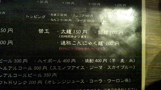 麺は中華麺、こんにゃく麺、ちぢれ麺がありますが圧倒的にこんにゃく麺が人気。