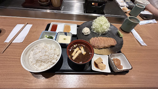 Great beef katsu, worth the wait. Being able to grill your own beef on a stone plate adds to the experience. The 3 included sides are a nice way for the restaurant to introduce customers to Japanese cuisine. Being a fan of warabimochi, I especially appreciated that side dish. (Though I prefer softer warabimochi, this one was decent.) The beef katsu itself is very tender. It may look thin/small, but the meat is rich and filling. The menu is quite simple - choose from 3 portion sizes of beef katsu, then choose your drink (none, soft drink +600 yen, beer +800 yen, or highball +700 yen). The drinks are a bit overpriced. You will be served cold tea even if you don't order any drinks. In terms of logistics, the line starts in front of the restaurant but cuts off in order not to block other restaurants. It continues just outside the sliding doors to the left. It's not the most obvious thing, but the staff can point you in the right direction. While in queue, one of the staff will ask for the number of people in your group. Later, they will give you a menu so that you can place your order prior to being seated. You will receive your food shortly after being seated. Other than the identification of the queuing location, the overall process is fairly smooth.