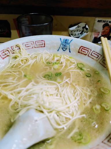 A well known classic spot serving typical Hakata ramen. Do not come if you’re afraid of dirtiness, strong odors and flavors, or the ramen you have in mind is something looking fancy. Tonkotsu Hakata ramen is made here on an ever boiling same pot, in which new bones are poured, and a mystic brown foam just overflows from it. The soup offers a 2 cm layer of bone marrow fat that definitely not everyone can handle, and which really difficults enjoying the broth beneath it. In fact everyone around me just left all the broth having only the noodles which were good. The spot is dirty and the processing of raw eggs just in front of me did not seem very safe. I would rate the food as 2.0 as the amount of meat fat on top of the broth made it impossible to enjoy it. Since the only oden piece which I tried, kinchaku, was tasty and melting I rated it at 3.0. Don’t expect much politeness from the staff either. At least I was lucky to...