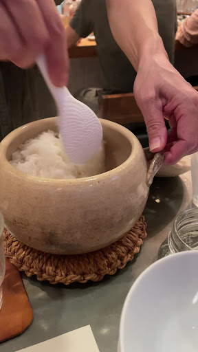 At the end of the meal, they serve rice cooked in a traditional clay pot—it was fluffy and delicious.