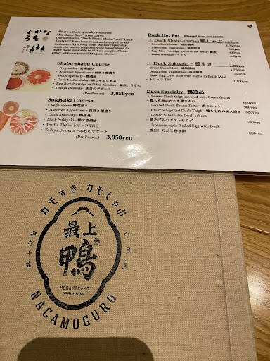 Read moreA specialised duck restaurant with various duck dishes available. No worry, English speaking staff and menu are also ready. To start with, I chose shabu shabu over the sukiyaki course. The salad is very fresh and goes well with miso. The starter dish comprises of white fish sashimi, raw duck meat, and a potato salad with duck. There was a specialty duck dish which I cannot tell, it’s deep fried and the texture was quite crispy, I guess it’s kidney or heart. Now comes the shabu shabu pot. The naganeki onion (looks like leek) is pretty generous. The duck was sliced to very thin pieces (how they do that?) so the cooking is quick and easy. The final touch is a choice between porridge and udon, but here comes the surprise, the staff suggested soba noodle, which is a superior choice for me. Duck and soba go really well together, the strong taste and high fat content of duck is a great match with plain noodles in soup. Overall the...