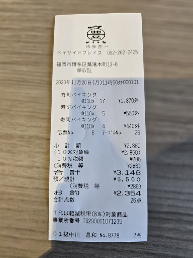 Came over twice for cheap, fresh, and delicious sushi and seafood sets. Tried their signature tuna belly sushi, fresh uni, fried tempura, and many more seafood. Firstly, be ready for a queue and to wait either for take-outs or dine-in. Staff are all friendly, welcoming, and professional. Ambiance was comfortable and cozy with an efficient layout for ordering and getting the food. Drinks and sauces were self-service. If going for dine-in, please remember to write your alias and no. of pax down in the book at the stand. The staff will call out once the table is ready. Food prices, portions, and quality are very good. In fact, the most value for money in whole of Hakata. The only thing is the crowd and waiting time. Overall, I really enjoyed the dining experience and services provided. So, I'm giving them a good 5 star rating. Highly recommended to come early for the fresh and delicious sushi...