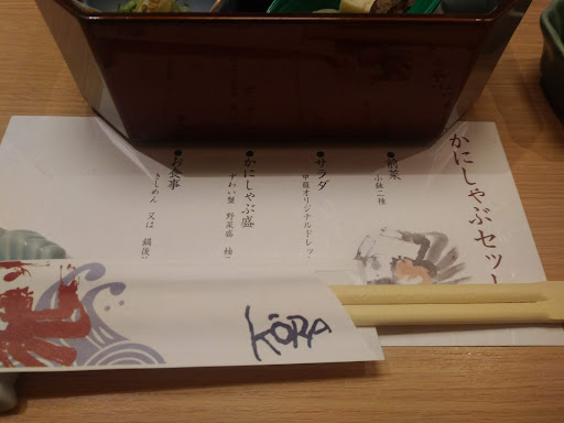 Read more随分前から「カニを食べに行こう‼️」と話はしていました。が、なかなか機会が無く、今の今まで・・・。 やっと訪問出来ました。 お店に入るや否や、めちゃめちゃ綺麗で好感触です。個室のテーブル席に案内されました。予約時に事前に【かにしゃぶセット】を注文していたので、既にテーブルにはお鍋の準備されていました。ありがたいですね。私達のテーブル担当の方も、とっても丁寧な接客で文句なしです。これは、【かにしゃぶ】も期待大です。 まずは【生ビール】で乾杯です。美味しい❗前菜、サラダを肴にメインの登場を待ちます。そして、来ました❗来ました‼️かにしゃぶです。ファーストしゃぶは、お店の人によそってもらいます。いよいよ、ドキドキの一口をいただきます。 「うわぁ❗おいしい‼️」出汁がかにの身にしゅんでいてめちゃめちゃおいしいんです。やっぱり来て良かったです。 『かにを食べる時は無口になる。』と言われていますが、これは世の中の鉄則なんですね。夢中でしゃぶしゃぶしました。ドリンクは【生ビール】から【日本酒のぬる燗】に変更です。食事がおいしいとお酒もすすみます。あっという間に、お鍋の中は空っぽになっていました。淋しい気がします・・・が、まだまだお楽しみの雑炊があります。実は、私達は雑炊がめちゃめちゃ好物なんです。お店の方に美味しそうに作っていただきました。見るからに美味しそうでしたが、想像以上においしいかったです。 大・大・大満足です。 本当に、全ておいしかったです。 ありがとうございました。 そし...