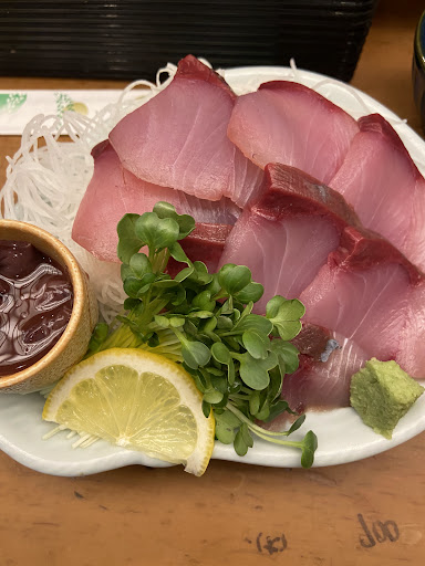 We ordered 5 slices of yellowtail (in summer, no less), 5 slices of sea bass, some packaged simmered shishamo, marinated baby squid, and two tiny portions of squid jeotgal. The bill? 4,400 yen โ outrageous for food that shouldnโt cost more than 1,500 yen, tops. And to make it worse, the taste was awful.