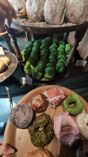 Love love love the pistachio cream donut they was probably my favorite and my least favorite was the strawberry flavored ones, it tasted quite artificial to me. The queue was about 10 people on a weekday but it moves fast. Theres no shades and you basically have to decide on the spot what you want cause once you select or once you pass the section it’s hard to go back and add more to your tray. I did not like the I’m donut cafe next door right next to the exit. I had purchased donut and went in there to get drinks i put down my stuff at a empty table and got yelled at cause I didn’t order first but honestly I was carrying too much stuff in my hand to even reach my wallet… was not a fan of the rude service. Ended up taking my donuts and leaving without getting a drink because I don’t support terrible rude service. This is a take it to go type of spot or eat outside in the scorching heat. Luckily my...