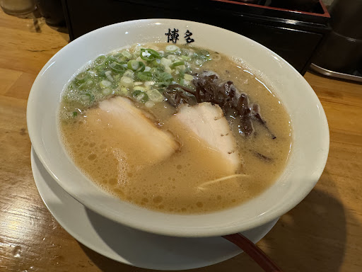 スープは、豚骨の旨味が凝縮された濃厚な味わいで、背脂がたっぷりと浮かんでいます。麺は細めのストレートで、スープとの相性が良く、替玉との相性も抜群です。トッピングには、チャーシュー、ネギ、キクラゲなどがあり、シンプルながらも満足感があります。