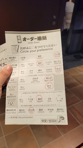 Read morePretty much eat and go. It is made for individual eating. This place, you order and pay on a touch screen before grabbing a seat. I find it nothing really special besides their famous name. You can choose how well you want your noddles, they let you choose up to one clove of garlic to add, the spicy level (if you can handle your spicy, then the hottest they have is not even hot. The regular size is about the size of an American small bowl or you can get their set which includes extra noodles. The service is absolute awesome, once you give them your tickets and the questionnaire then it comes out in five...