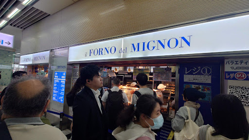 Drawn in by the Rich Aroma of Butter at the Station As you walk near the ticket gates at Hakata Station, a sweet and buttery aroma wafts through the air… The source? None other than Mignon, famous for its freshly baked mini croissants! Mignon Hakata is always bustling with customers, with long lines being the norm. Their bite-sized croissants are crispy on the outside, moist on the inside, and loved by people of all ages.