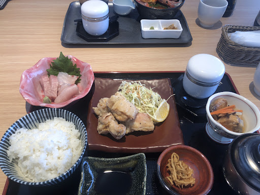 私は平日限定の唐揚げ定食を頂きました。 お味噌汁はちゃんと魚の出汁が使われていて美味しい。小鉢のお造りや魚の南蛮漬け、揚げたて熱々の唐揚げも美味しかったです。 娘は海鮮丼を食べました。美味しいと言っていました。 他の方が注文されていたカキフライ定食も美味しそうでした。