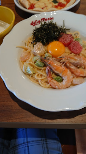 私の母親と一緒に同伴し、私の病院での通院した後の帰りに初来客しました😺 私曰く全国にある「ジョリーパスタ」のCMを拝見させて一番 気になったのはジョリーパスタ期間限定コーナーにあった「秋のサーモン・明太子フェア」そして寒い時期には「スープパスタフェア」と言うメニューを見て一番気になりました😹 値段としてはちょっぴり高めですけど私が頂いた期間限定メニューは「明太ぼなーら ~炙り明太子・エビ・アボカド~」2回目の時に訪れていたメニューは「まるごと焼きカマンベールのデミグラススープ」3度目は「赤海老のレモンクリームソース」を食べました😽 めっちゃ美味しかったです😽 「ジョリーパスタ」でのイメージと言えばミートソースやらカルボナーラ等の定番メニューより季節にあった「期間限定」メニューが一番豊富なので「期間限定」メニューの事が一番気になったらぜひ食べて来て下さいね😽 また客層的で言うならママ友や家族連れのお客様が多く目立っていますので「ジョリーパスタ」を初来客して超お洒落なファミレスでした😽 最後になりましたが私が支払いしていた時...