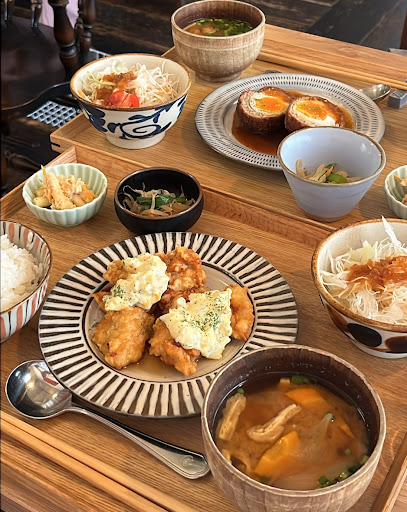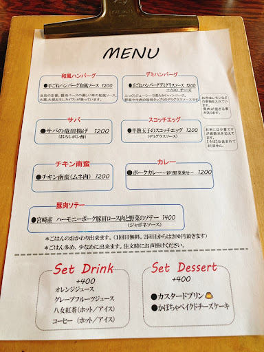 Cozy restaurant & cafe serving up scotch eggs & hamburger steaks, along with desserts & drinks.
